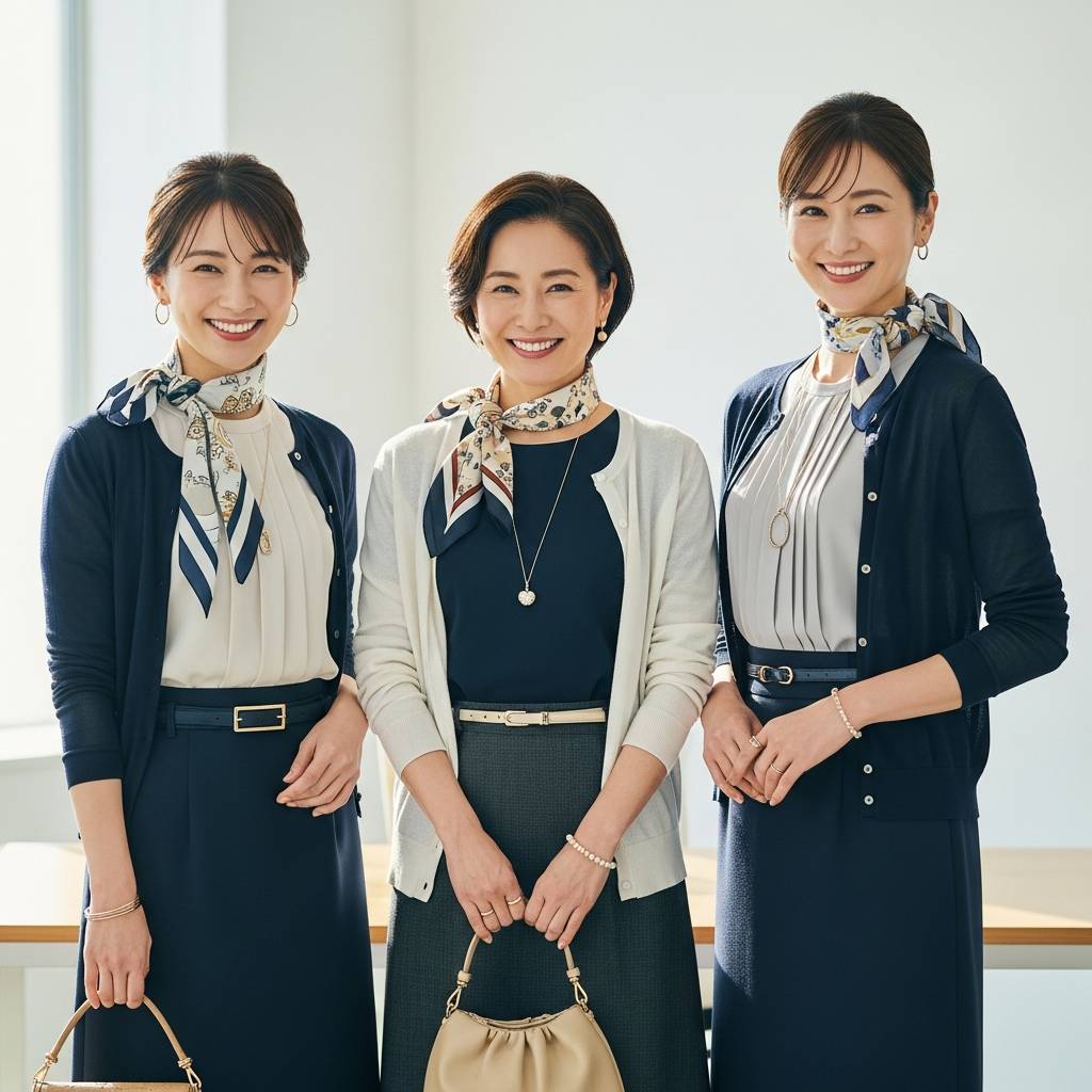 年齢やキャリアの段階に合わせて着こなしをアップデートしていくことも、事務服をおしゃれに見せる秘訣です。例えば、働き始めの若手層であれば、明るいパステルカラーのブラウスや小ぶりなリボンを取り入れて、フレッシュで親しみやすい印象を演出するのがおすすめです。この時期は、職場の身だしなみルールや社会人としての基本を少しずつ学ぶ大切なサポート期間でもあります。まずは基本をしっかりと押さえつつ、少しの色や小物の変化を楽しむスタイルから始めてみましょう。